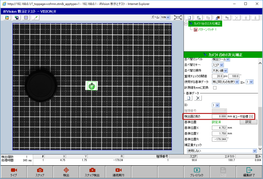 In this example, the hand has moved too far relative to the reference position, so we will shift it in the positive direction of Z. Specifically, we will change the “Detection Surface Z Height” in the red box on the next screen.