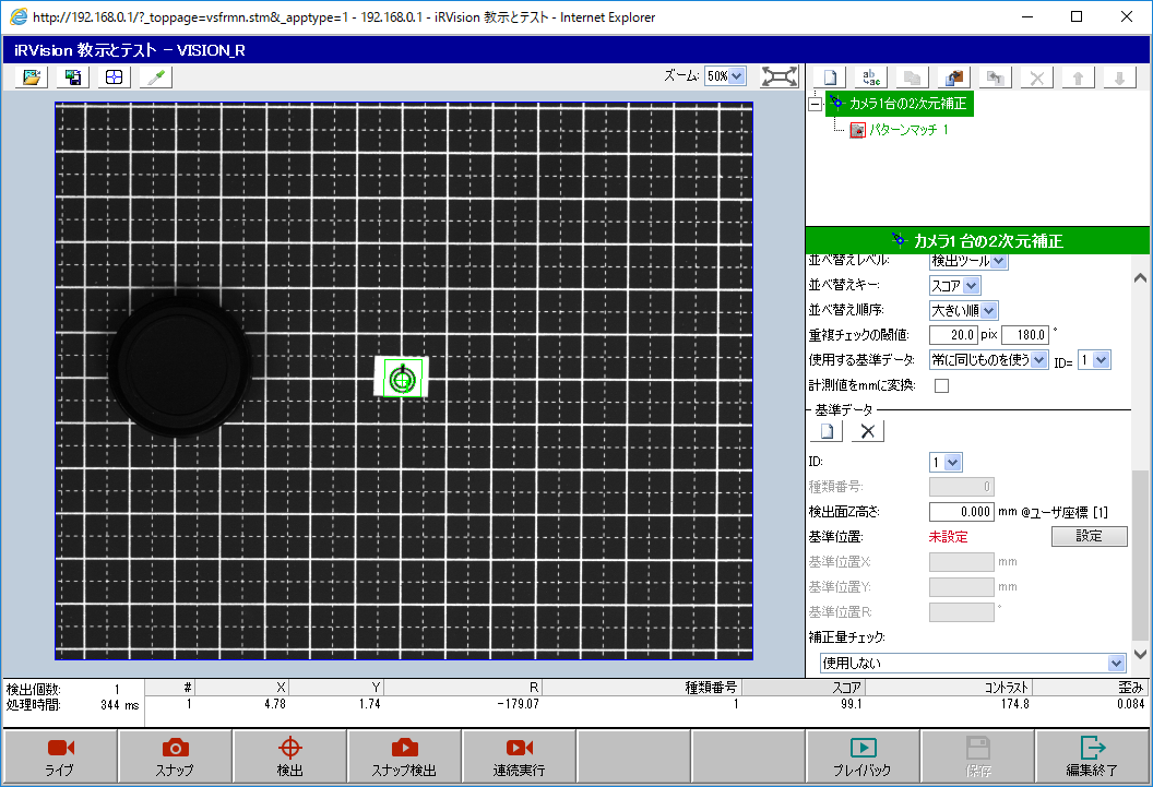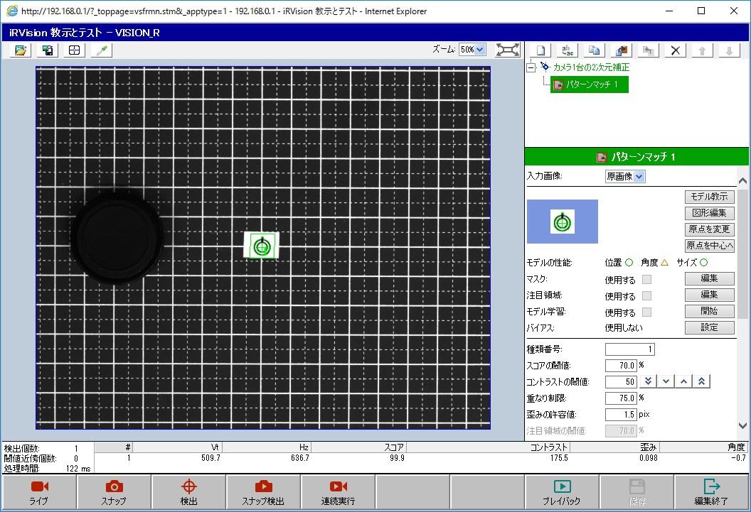 Step 1. First, place the workpiece in the center of the camera and take a picture, then use that image to teach the model for pattern matching.